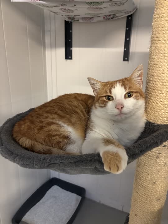 Mød Tycho Brahe – en smuk rød- og hvidstribet kat på 2 år med et roligt sind og et varmt hjerte. Han er en kælen og tillidsfuld fyr, der elsker selskab og nyder at være tæt på sine mennesker. 😻
