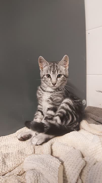Bjørn kom ind som herreløs og løb rundt på egen pote med sine søskende, men heldigvis fik han en tryg start hos en af vores plejefamilier, hvor han er vokset op sammen med sine søskende. Her har han lært alt det vigtige: at lege, bruge kattebakken og ikke mindst at tale “kattesprog” 🐾💬