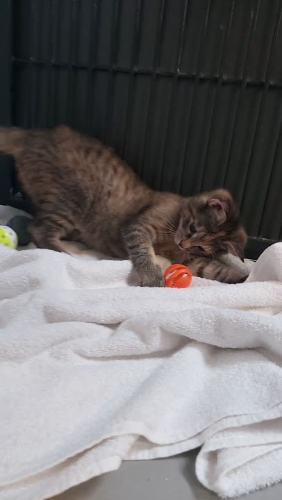 Mello kom ind til os som en lidt skræmt lille killing, der havde brug for ro og tryghed. I en af vores kyndige plejefamilier har han fået netop det – og i dag er han vokset op til en virkelig dejlig, tillidsfuld og legesyg fyr.