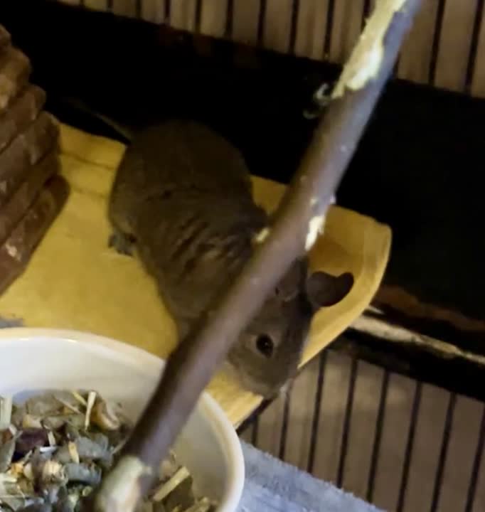 - Kræver et stort bur/voliere – Hvis alle 4 deguer skal holdes sammen er der et krav om et indendørs bur på mindst 100–120 cm højt med etager og platforme. Jo mere plads og flere etager = jo færre konflikter og gladere dyr.