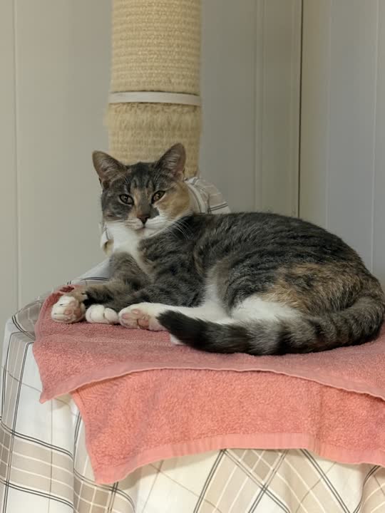 Hun er en frisk og legesyg ungkat, der elsker at udforske alt omkring sig. Dalia søger et hjem, hvor hun kan få adgang til både trygge indendørs omgivelser og et sikkert udendørsområde, hvor hun kan snuse og lege frit 🌿🐾