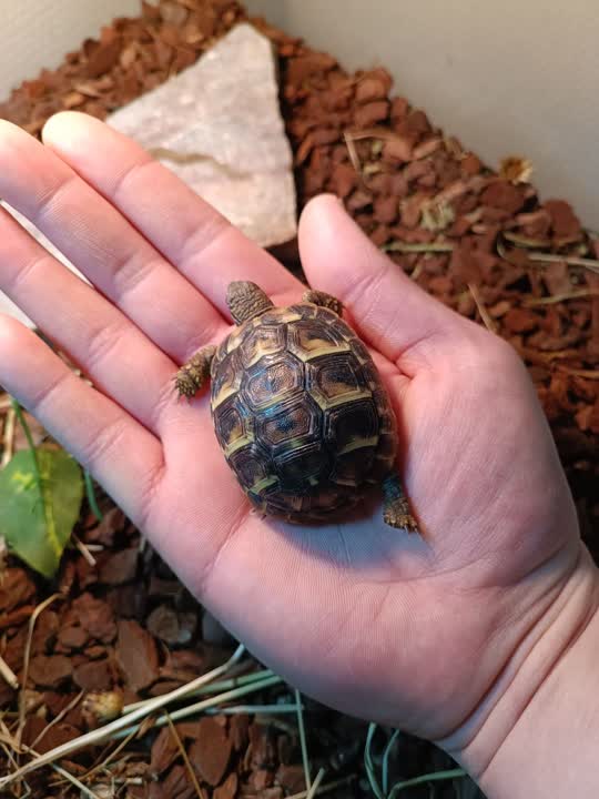 Mød Donatello – en lille, fin græsk landskildpadde på blot tre måneder.