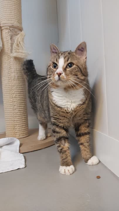 Henning er en lille bitte kattemis, gemt i en stor hankats krop. Han er lidt utryg ved nye lyde og de trafik der foregår her på internatet. Men med et lille snært af nysgerrighed. Han er sød, blid og nem at have med at gøre. Han vil rigtig gerne nusse og han siger ikke noget til de andre katte på internatet. Men han er lidt overvældet og søger hen i hjørnet af sit bur eller bag ved sit kradsetræ, alt i mens han forsigtigt og nysgerrigt kigger ud på hvad vi dog alle sammen laver. Henning skal ud til hjertevarmt hjem hvor han kan være mors og fars dreng, blive skånet lidt for alt for meget trafik, og selvfølgelig have masser af plads. Fordi Henning er lidt forsigtig skal han ikke ud til helt små børn eller hunde.