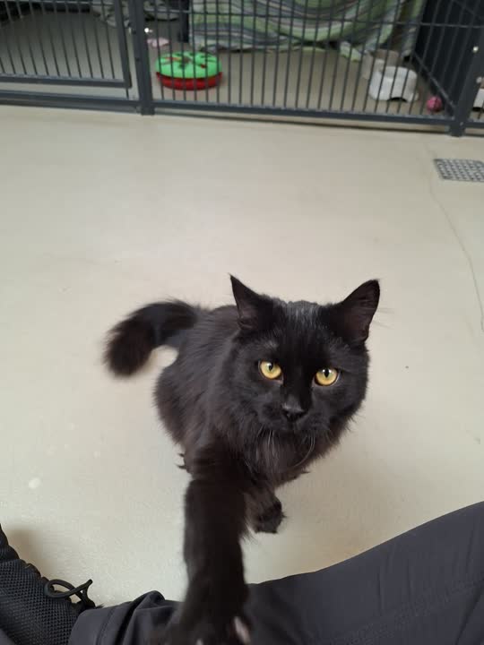 Mød søde Annisette 🖤 – en lille sort killing med et hjerte fyldt af kærlighed. Hun er en utrolig kælen og hengiven pige, som er allerlykkeligst, når hun får lov at være i nærheden af dem, hun holder af. Især hvis de gider at lege med hende.