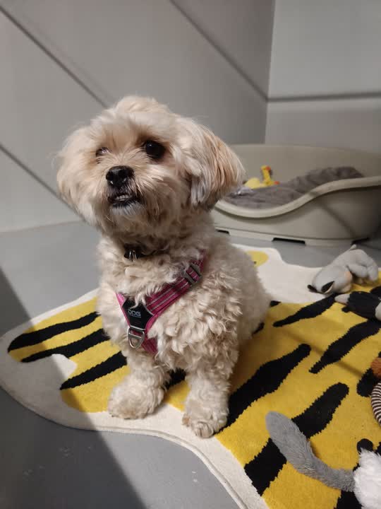 Ellie er glad for at køre bil, især hvis hun har sin lille donut med at putte i 🐶 Hun kan godt være alene hjemme, men det er vigtigt, at det trænes stille og roligt op i hendes nye hjem.