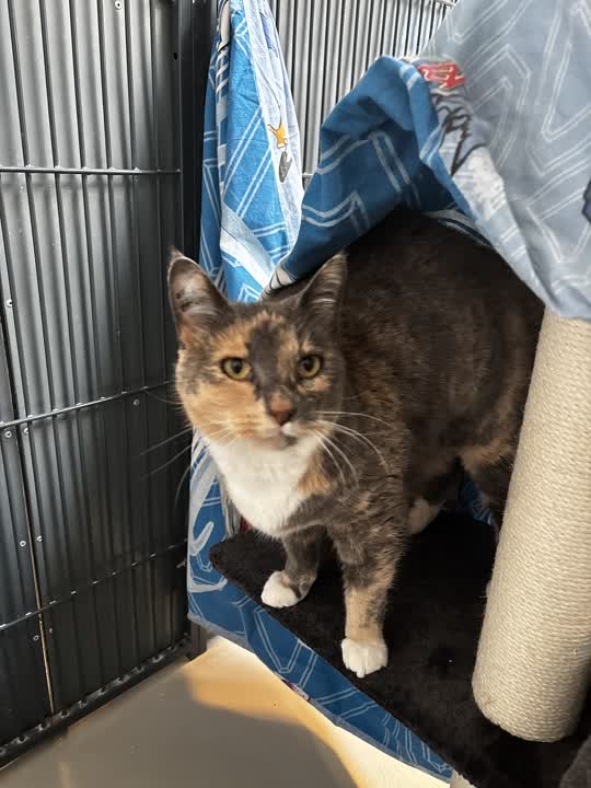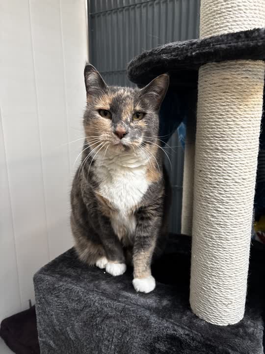 Roulade er en kontaktsøgende kat, som virkelig nyder selskab og gerne vil være tæt på sine mennesker. Samtidig er hun, som navnet antyder, en lidt rund dame, så hendes kommende hjem skal være indstillet på at hjælpe hende med at holde en sund vægt med passende fodring 🥰