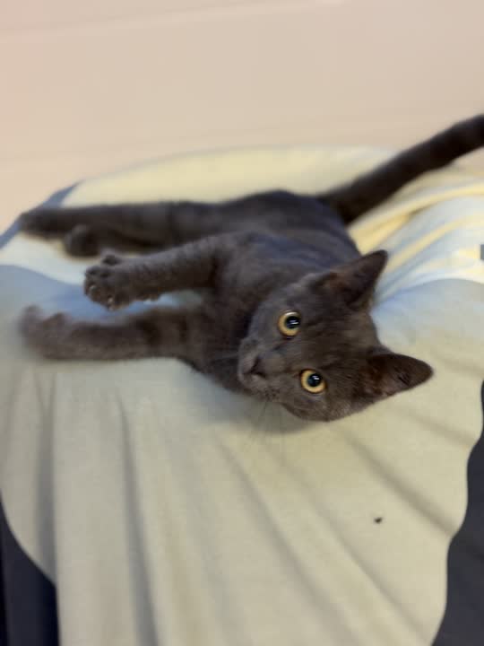 Ash er en dejlig lille størrelse med et stort hjerte. Hun elsker opmærksomhed, nus og gode lege – og hun deler gerne sjove stunder med både børn og andre killinger. Her på internatet leger hun nysgerrigt med sine kattevenner og nyder selskabet.