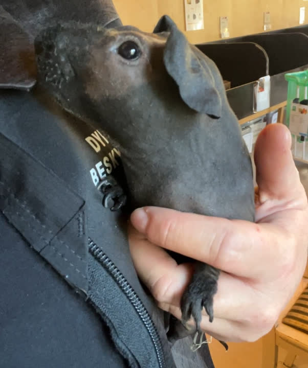 - Han er af racen skinny marsvin og ny ejer skal have sat sig ind i deres specielle pleje