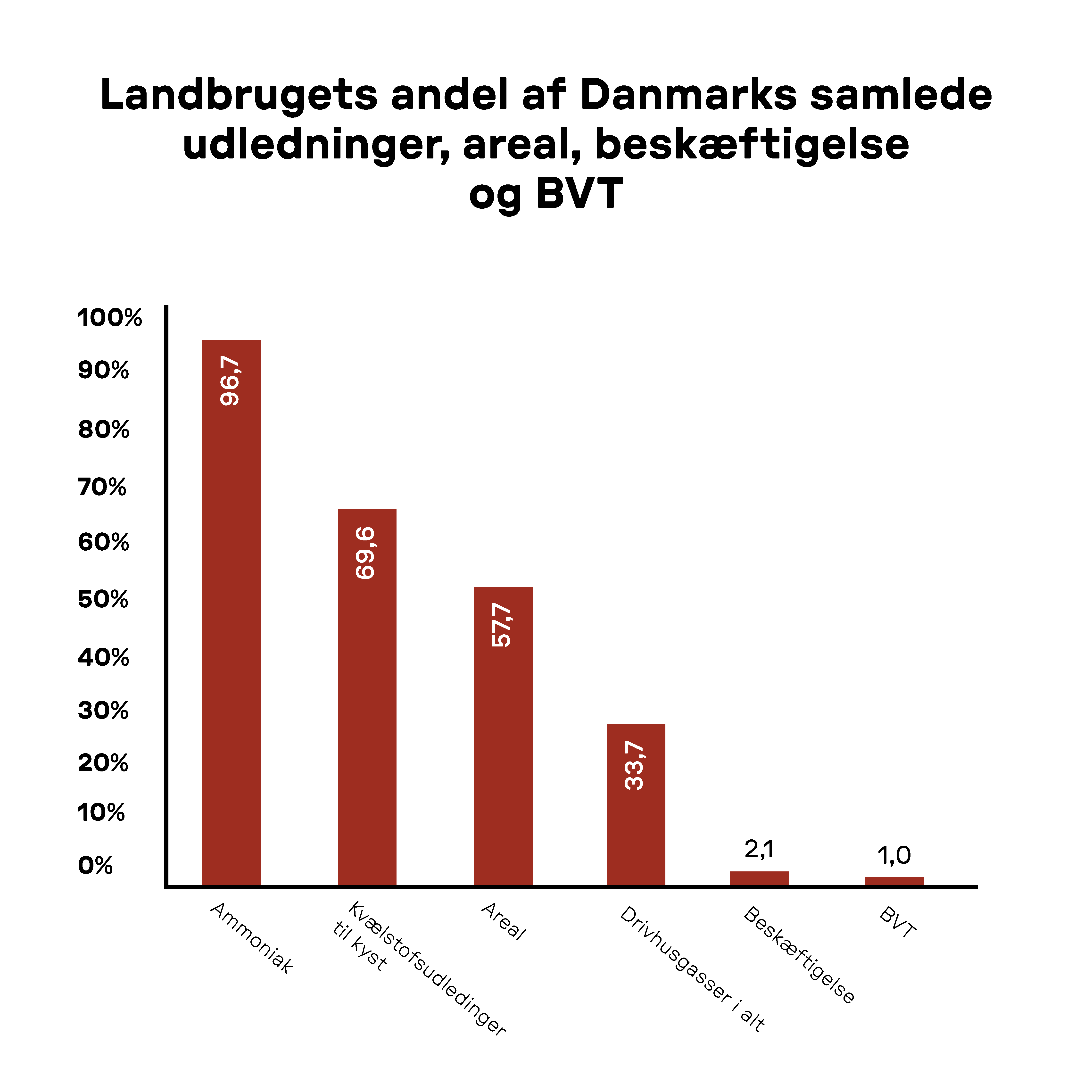 De store samfundsøkonomiske konsekvenser skyldes blandt andet, at landbruget er den største udleder af både drivhusgasser, ammoniak og kvælstof til havmiljø i Danmark.