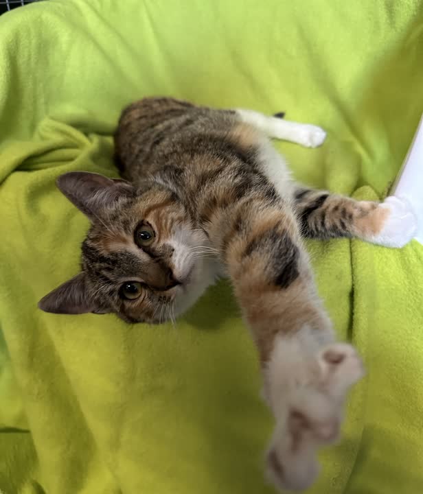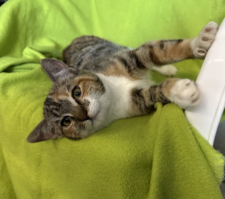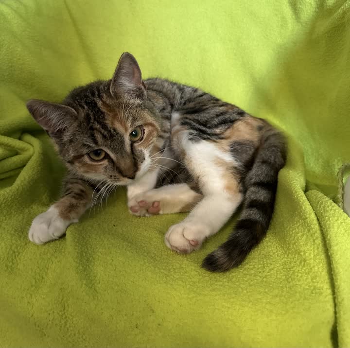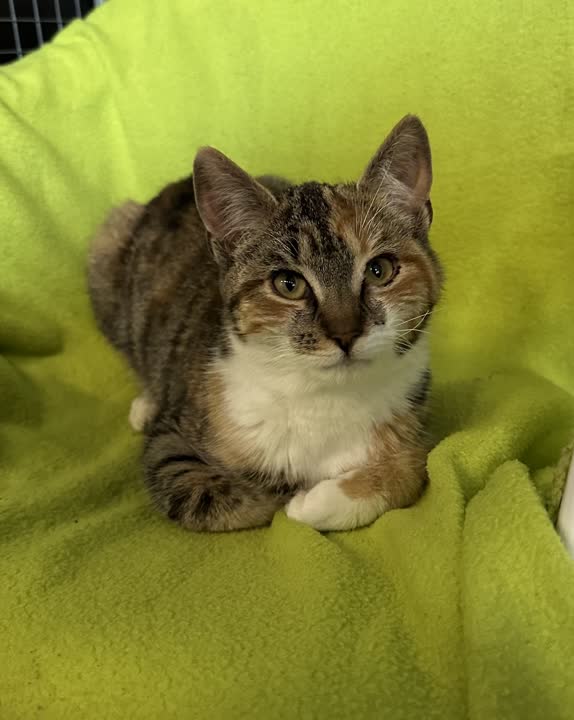 D-14371 - sød og kælen trefarvet hunkat fundet i papkasse.