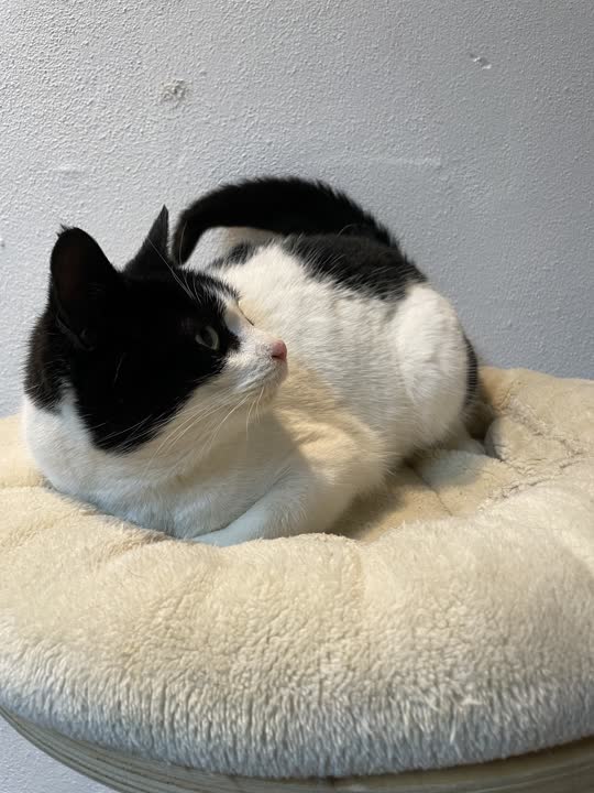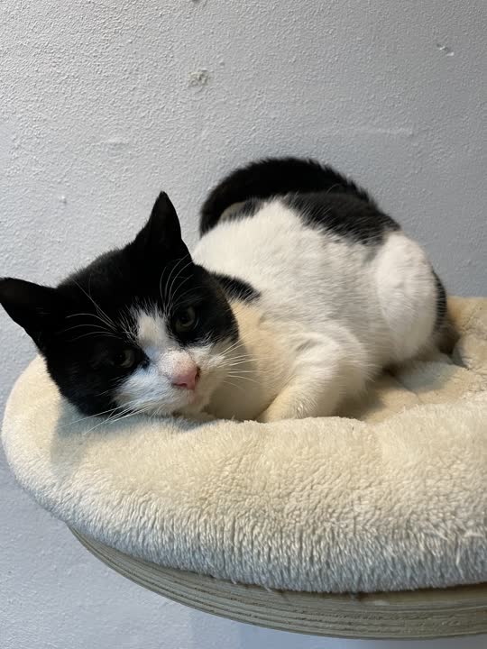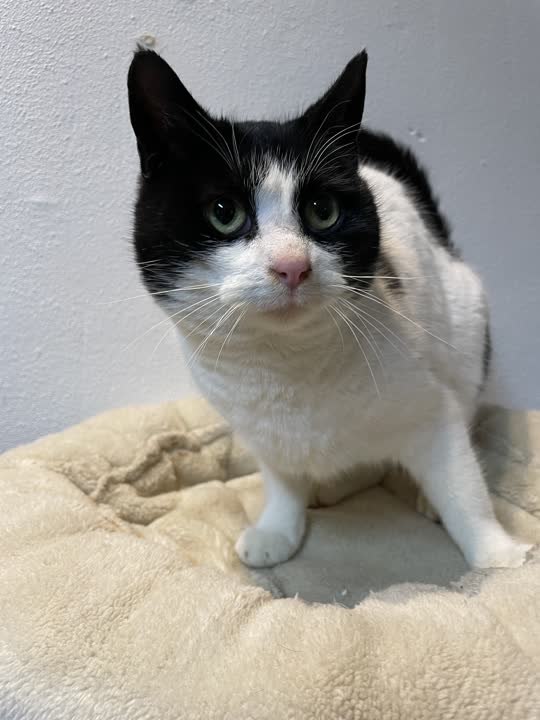 D-15410. Kælen og menneskevant hunkat i sort/hvid fundet.