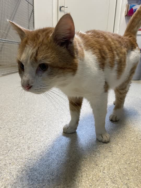 D-15527. Sød og menneskevant rød/hvid hankat fundet.