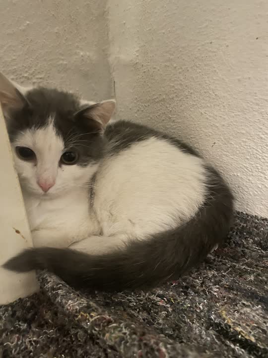 D-15917. Hunkilling i hvid/grå fundet med mor og to søskende. Nervøs.