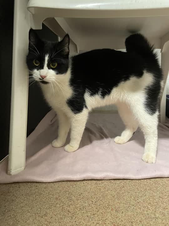 D-15937. Sød og tillidsfuld hunkat i hvid med sort fundet.