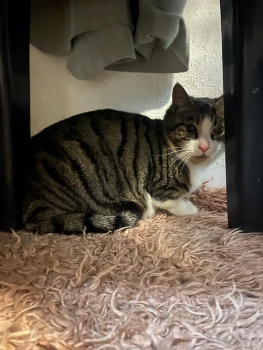 D-16256. Gråstribet/hvid kat fundet, nervøs.