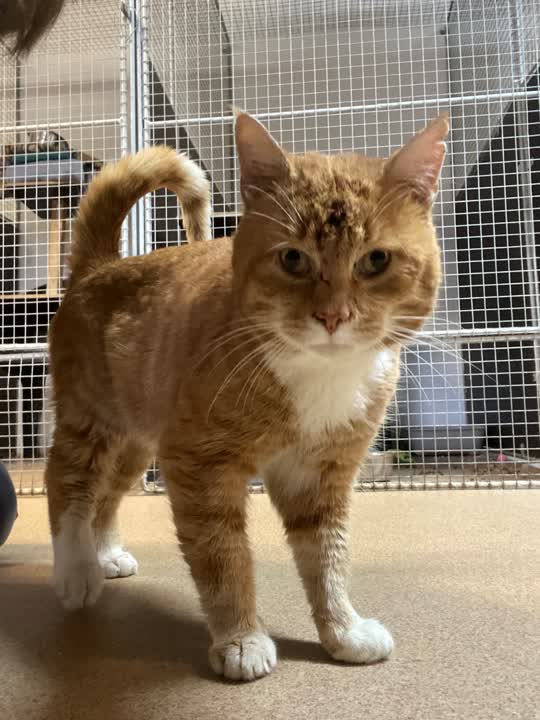 D-16631. Sød og venlig rød hankat fundet med skade på det ene bagben.