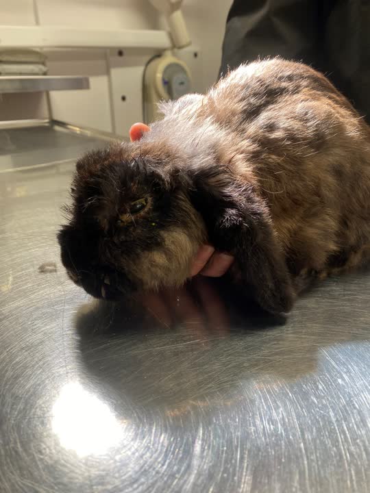 Meget medtaget brun kanin fundet.