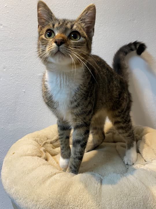 D-16943. Hunkilling i gråstribet med hvide poter fundet. Halter lidt på højre forben.