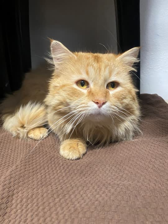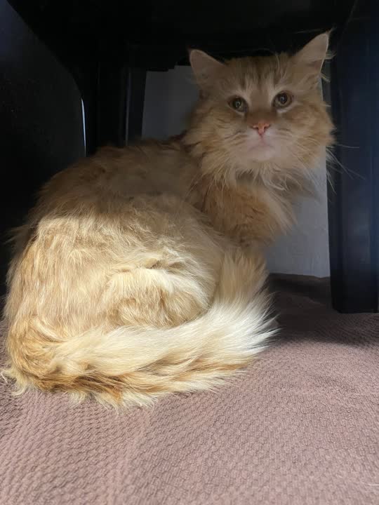 D-17162. Rød langhåret hankat med meget filtret pels fundet. Sød og venlig.