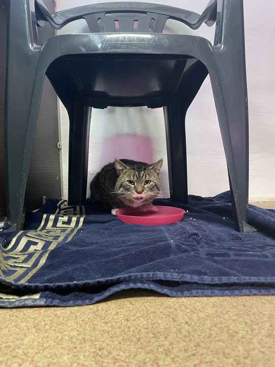 D-17523. Gråstribet voksen hankat fundet. Befinder sig på Brande Internat.