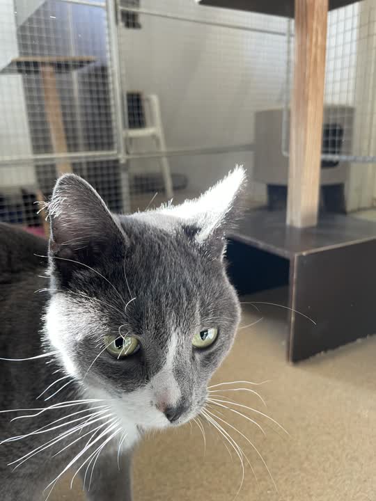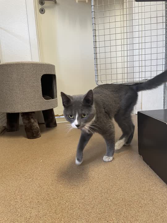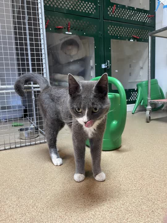 D-17525. Grå, kælen hankat fundet. Befinder sig på Brande Internat