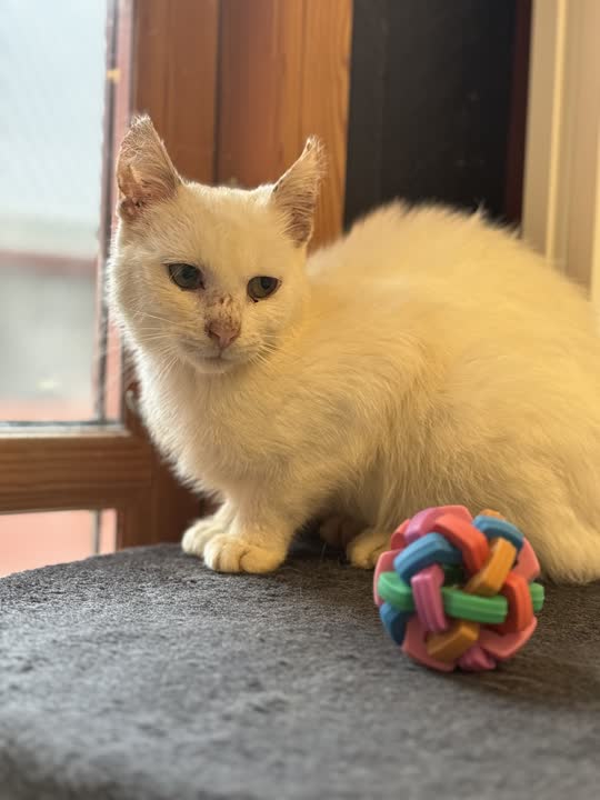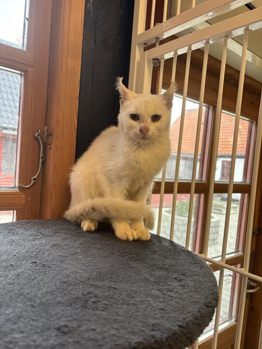 Denne hvide hankat som ikke er mærket eller kastreret er fundet på Lundeskolevej. Han er tynd og meget sky.