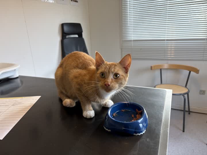Kat fundet dumpet i papkasse med killinger. Indsat på Fyns Internat med opholdsnr. D-13802
