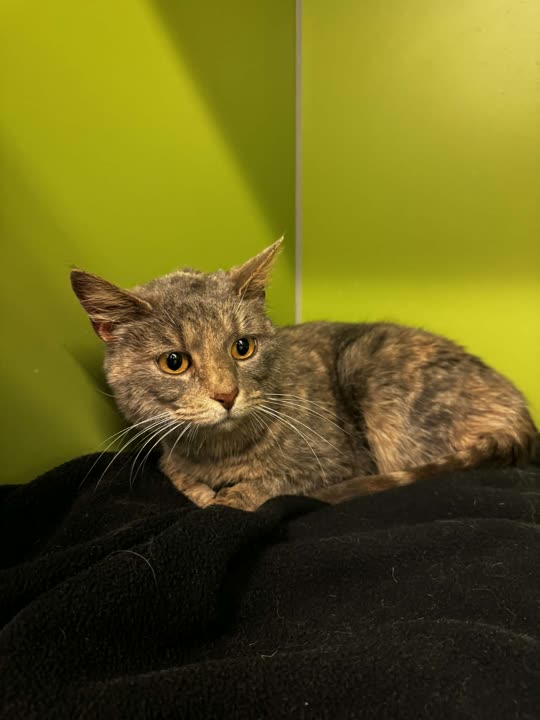 Sød hun kat, som har været tilløber hos henvender. Hun har en gammel utydelig øretatovering, som muligvis er WMV130 men ikke registeret
