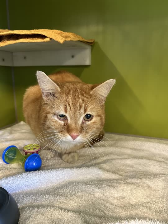 Intakt handkat uden mærkning fundet ved Jerslev. Rød med hvid hage, bryst og poter.