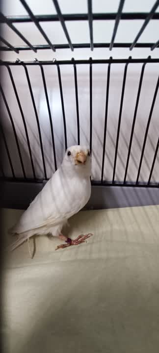 Hvid kanariefugl med lilla ring indleveret på roskilde internat. Sagsnummer D-16888